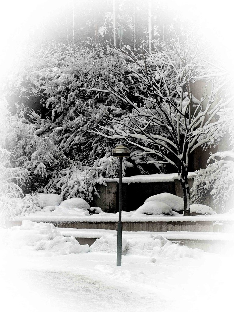 Vid sjukhusentrén i vinterskrud Foto: Ingrid Sandström